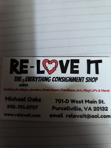 Ā Ā Ā Read moreGreat shoppe! Whether Iām looking for unique furnishings for my home or a cool investment piece of clothing, I usually check out Re-Love it first. Michael Oaks, owner, is a consignment pro. He has taken great care to ensure a safe shopping experience by following COVID guidelines. I highly recommend this place for whatever youāre looking for in the way of a new treasure or just an everyday item you might need. He also has a great customer loyalty program so you can earn deep discounts. His prices are fair and heās knowledgeable about his inventory. Iāve both consigned and shopped here for years and have always enjoyed a great experience. This business.is the townās...