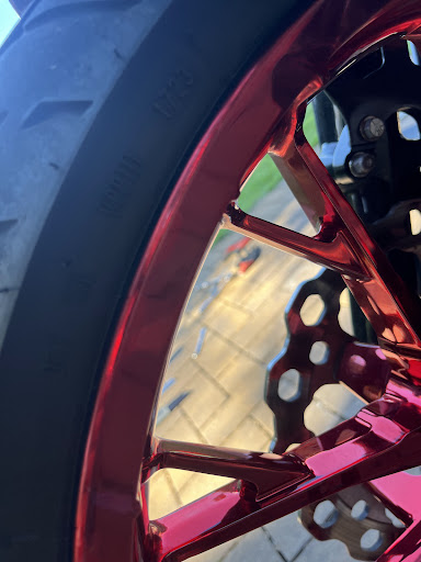 The front wheel was also damaged during this process from the motorcycle lift front wheel clamp.