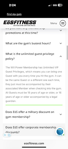 Read moreI enjoy the G-Fit Classes that EOS has to offer. My favorite class is the high fitness class with Lacy Combs. She’s my absolute favorite person that does the classes. I wish she did more classes. She is very personable, Lacy will make sure that she spends a few before and after class with everyone. She has great energy and is very nice to everyone. I have been spending a few weeks now with my Trainer Harley, she is pretty amazing as well. She will make sure that I get done in time to go to my Pilates class on Mondays as she knows how important my classes are. She is very good coaching me and will notice if I may be in pain she will show me an alternative way to do that specific workout. Harley cares about my needs wants, she will focus on what area I want to work out on my body. I can’t forget about Zachary! Zachary continues to show compassion in his role as a manager. He takes the time to say hello to me when we see each other and he will ask how I am doing. He is pretty amazing. To make me feel comfortable with moving forward with a trainer, he trained with me on my first session and I am very much appreciative of how much he cares about...
