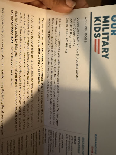 Read moreI am concerned that I went to the facility to present grants received from Our Military Kid, a 20 year veteran organization as a part of the Month of the Military Child. I was advised there is a payment for each child. I was turned away at the front desk because per the website it shows that the address and subsidiary the organization should write the grant commitment check to should be the center. In addition to being told that was not an option, I then was advised to make an appointment with the director to even have this considered In context, my children could have easily had these funds applied to the Triangle Y Ranch camp ( A YMCA branch for overnight camp in Tucson). which has already given them a free week of overnight camp. This would have covered two additional weeks of fun. However, I thought it better to invest funds where I live. The funds can not be reissued per the strict guidelines of the OMK organization at application process and their website. What a disappointment. Another fine example of "Thank You For Your Service" !