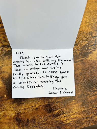 Having outfits that incorporated vintage South Asian fashion and were still modern was something I found difficult to find until I found Rivesse through a previous friend that also worked with Ishan and Pooja for his wedding outfits. When I met Ishan and told him that I was pretty much open to anything, he brought me in to do some brainstorming and create a list of ideas that my wife to be and I loved - and he worked hard to show different variations and iterations of those designs, making sure we absolutely loved them and we did. Within just a short period of time (weeks), Ishan and Pooja came back with phenomenal custom, Indian-American fusion sherwani and tuxedo outfits. Not only am I excited to show out with my outfits, but they’re versatile enough to wear at future weddings, which Ishan and Pooja ensured during their designing, i.e., unique, stunning outfits that could be worn at my wedding and at future weddings/functions. In addition to all that he did for me, he also made several custom kurta outfits for my groomsmen that they all loved and are excited to wear as well!