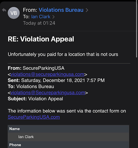 UPDATE: A month later and I get the ticket mailed to my house from them. Still no phone number to call, same online portal to pay. And oh, magically I can dispute again even though that was denied and locked for me when I first got the ticket and immediately disputed. Do yourself the favor and don’t park here. Who knows what kind of power this company has. Next thing you know you’ll have your car booted even...