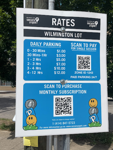 BEWARE!! This lot has scam tickets given out. Paid using a QR code on lot signs and came back to a ticket from a different company. After looking into it, seems to be a scam. Be careful parking here and do your research before paying any ticket.