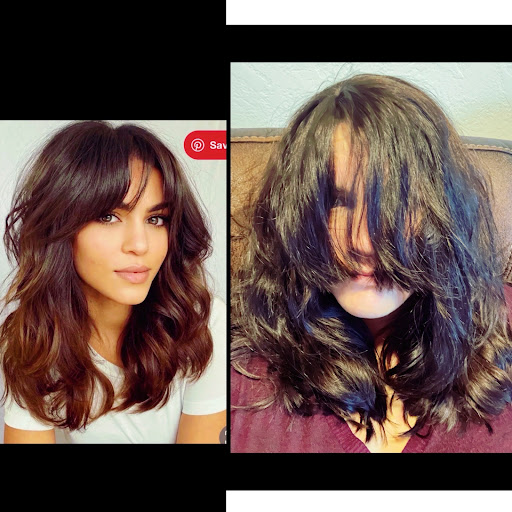 Added a photo of the haircut that I asked for vs the haircut that I got. My “bangs” are...