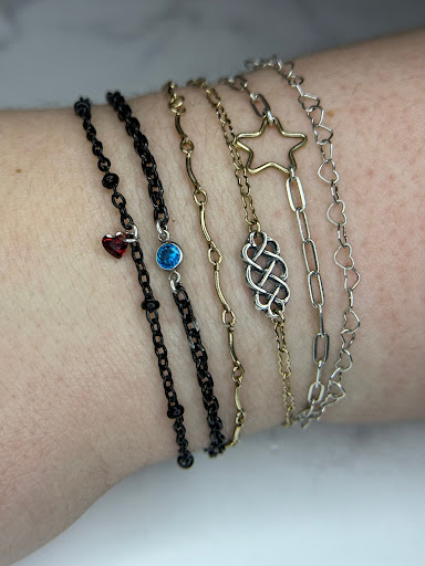I got my very first bracelet a year ago, and it's still here! I have matching ones with my mom, dad, and best friend. When my best friends had to get theirs off, Brooke was amazing for reapplying it and she even got a second bracelet! I have my little troup of all the colors, up next is the rose gold chains!! Edit: I totally forgot that I got a necklace/choker as well! Now I don't even have to think about it in...