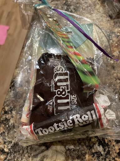 I also asked about the pretzel/goldfish and she told me it was in the party bags. I asked all the parents if they received pretzels or goldfish in the party bags. They all said no and they just got candy. Not just any candy——CHEAP leftover Halloween candies (Tootsie Rolls and Smarties).