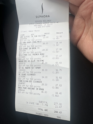 Read moreWe went into Sephora Redlands tonight because we previously bought a lipstick from the Sephora in Victoria Gardens and once we got home we realized that the box had a sample lipstick from a different brand in it. We did not have high expectations for an exchange but Sydney and Lindsey completely changed that for us. Not only did they let us exchange the lipstick but once they heard that this was a Christmas gift for my mom, Lindsey came out with a few gifts for my mom to make up for it. This wasn’t their mistake yet they apologized for the inconvenience and made our experience so much better. So much better that they restored my faith in Sephora and made me want to come back in the store and shop there. I will definitely be coming back and shopping at Sephora more because of them. They were exceptional and I do not have enough words to describe how beautifully they treated us and how much we appreciated it. Thank you Sydney and Lindsey for your excellent customer service, promptness and kindness. I also received great help from Rebecca in choosing a new concealer that fit my...