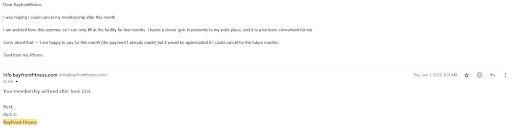 Read moreI have been trying to cancel my membership for TWO MONTH. There is NO WAY to cancel on the "pike13" website that Bayfront uses to charge members. Despite the presence of a "slider bar" that makes it look like you can cancel you membership it is IMPOSSIBLE. The support phone number they provide always goes voicemail and I have NEVER been able to contact anyone, and I have NEVER had my calls returned. The phone number they provide with the billing charge will not accept...