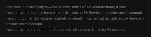 Read moreEA sports has Bots, running their auction house. They can false ban you with no reason or explanation. They make people buy the game and then you spend money, points, or coins on packs. The company can then ban your account at any time saying you cheated or distributed coins with no actual proof or human interaction. If you try to contact them, all you get is bots and generic messages. No actual human interaction or anyone to actually review your case. I recently saw one of my favorite YouTubers get his account banned because he pulled a card from a game generated pack and sold on the auction house. The player item or card dropped the next day in price and he was automatically banned and lost all his funds, money and time put in the game. I had a similar issue recently that they swiped all my coins after saying ng I broke the auction house rules. I know I did not cheat or did anything shady. I understand it's a video game but people put actually money and time in this game. I saw one case that someone put 10000 American cash into this game but then got his account banned or flagged. That's really money for virtual items the game can take from you at any time with no rhyme or reason. This is very shady business practices and the company deserves to be sued. They need to stop having bots and computers run their servers and auction house. If you try to contact EA, they just give you more of a run around while making talk to more bots and generic messages. They never actually fix anyones problem. Just send their customers generic messages saying ng that can't help them or been flagged. On top of this, a lot of kids play this game and spend their parents credit cards on this game. Or packs, which have bad odds and promote gambling to underage kids. Anyway they stole my time and money from me with no human response, so I will need $2000 back in computation. I had millions of coins I spent time and money. I need to be refunded. Something...