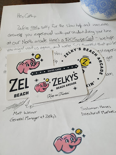 Read moreZelkys rigs their games. Even tried to talk to management before posting this picture. One of the employees told us that they had 4 major prize winners (a Saturday night) and that they didn’t want anyone else winning a major prize so they came to the machine where my kids had been playing for an hour trying to win a pair of Beats headphones. The employee said that they were instructed to cut the strap on the side of the Beats case so “no one can win them”. The look on my kids faces was awful. They had tried so hard to win because someone else had won in front of my boys that evening. One of my boys also witnessed the manager (a real Joey bag of D’s from NJ) stuff the crystal rocks in the bag of Beats making them heavier so they claw would drop them. I tried talking to two managers but they clearly only care about money and made it VERY clear they rig their games. I was able to get my credit card company to refund the $100 I spent and have filed a complaint with the BBB. Never ever ever expect to win a major prize there. That goes against their...