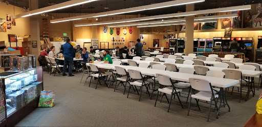 EDIT: Things have changed, now they have two locations in the Mall right near each other, one for the traditional board gamer one one for the miniatures and card game players. No more overcrowding, plenty of space with vintage arcade, pool tables, and collectibles....