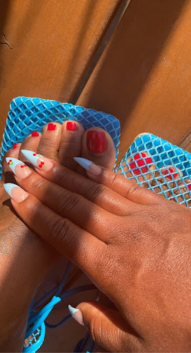 i came back here for my birthday nails in august and they never disappoint! i got a gel acrylic french tip set with gems and a plain white pedi + my little sister got her first mani at a salon! unfortunately there was a rush right when we came in but they finished us up like pros. the price can be up there if u get extra designs n stuff but overall i think their attention to detail and customer service is worth the price as someone who goes to the nail salon every so often.