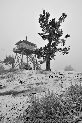The Fall Mountain Lookout Cabin is a former Oregon Forest Service lookout built in 1933. Back in the day, before satellite surveillance technology, lookout personnel monitored the forest from this perch for signs of smoke, alerting fire guards at times of peril. The lookout is located approximately 14 miles southwest from John Day, Oregon on Fall Mountain in the Malheur National Forest. At an elevation of 5,949 feet, the approximately 25 foot high lookout tower offers 360-degree views of the Strawberry Mountain Wilderness, and the surrounding valley including the distant towns of Seneca and Mt. Vernon.