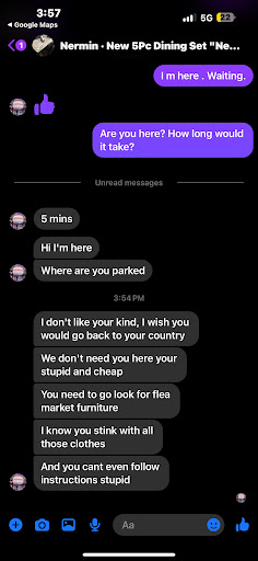 Read moreWorst customer service ever. I went to the warehouse to purchase dinner table and we set the time to meet at 3pm with Carla Banks via Facebook Marketplace but Carla Banks ends up coming late. I waited in the store with my family for her and some folks showed us the table while waiting and it was not good quality and we left the store. Then she starts texting me with disrespectful words and discriminating sentences for my family. This is...