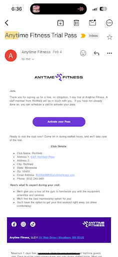 I finished my rehab and went to cancel my membership (which they wouldn't accept my cancellation via email despite state statute) and when i was signing the form the same AF employee who tried to upsell me says "so you're just gonna quit?" Hugely unprofessional attempt to guilt trip or shame me into staying at the gym.