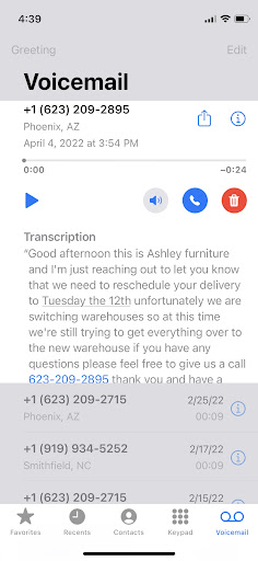 I indicated that I had Nov. 24 off, but did not have Dec. 1 off and that this would cost me vacation time. Not her problem. I mentioned that Ashley had, in no way, attempted to contact me to let me know that the delivery had been rescheduled. Nothing. I mentioned that I had a business meeting on Dec. 1 and asked if the delivery could be scheduled for the afternoon. No. She had no control over the delivery time and I would not find out the four hour window until a text the day before.