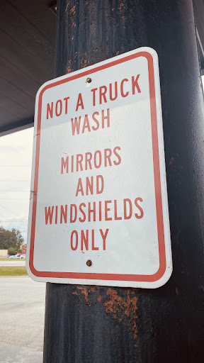 Read moreThis place is not allowing to wash your truck’s license plate and remove bugs from radiator, even though the water hoses are at each pump! Yes, they are serious, and attend drivers who breaking their rules! They pointed to me on the posted sign, “no truck wash.” See picture attached. But they are not the only one station in the area with cheaper fuel! The RaceTrack is down the road at the exit! Plus, their driveway has deep trench that can damage your side skirts and lower bumper, see pictures attached. No overnight...
