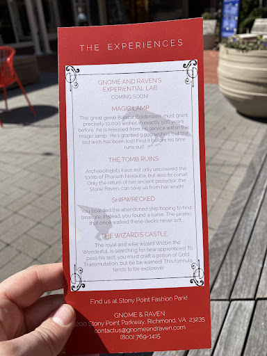 Read moreExperience was good in the details, and the management in some aspects, but I didn't have any fun at all. Most of that was because of two things: The group was way too big for one room. The people bringing us there, I was with a program that was using it for a team building type thing, were a bit at fault for asking for that many in one room, but Gnome and Raven is a bit more at fault for accepting that many and thinking everyone would be able to participate. Way too many cooks in the kitchen, and in the end I got to do absolutely nothing besides look through books for half an hour, which brings me to my next point, management issues. I don't know who did my room, maybe it's the same lady managing the tomb raider one every time, but that's the one our group did. I found two books, that's the only thing no one else would touch because of the previous problem I mentioned, and I spent half an hour at least skimming and reading and trying different numbers as codes to locks, and the manager for our room decided to wait until the rest of the group showed a slight interest to tell us they were purely for decoration purposes. The fact non-blank books were even used is a problem in itself, that is definitely going to be seen as a potential clue, and it took the manager for our room half an hour at least to tell me I was being completely useless and incorrect (not literally) for the first half of the experience. The second half was problems with some of the people partially, but mostly too many people in the room, and I apparently wasn't fast enough to push someone else out for my place as a leader. I know at least a few other people had to deal with that. Perhaps the rest besides me and those other few people had fun, but this sucked for me, and the people here are at the...