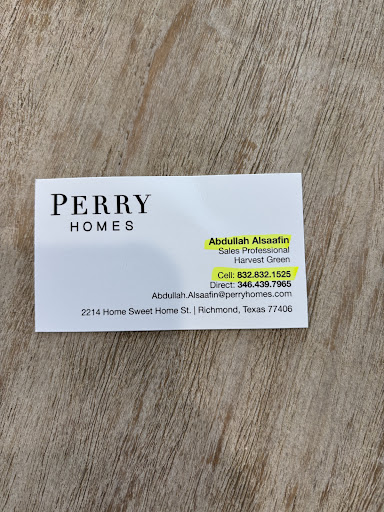Read moreI had a great experience purchasing my home with Perry’s Homes! From start to finish, the process was smooth and well-managed, thanks in large part to my amazing sales representative, Abdullah AlSaafin. He was incredibly helpful, consistently checked in with me, and made sure everything stayed on track. His professionalism and attention to detail truly made a difference.