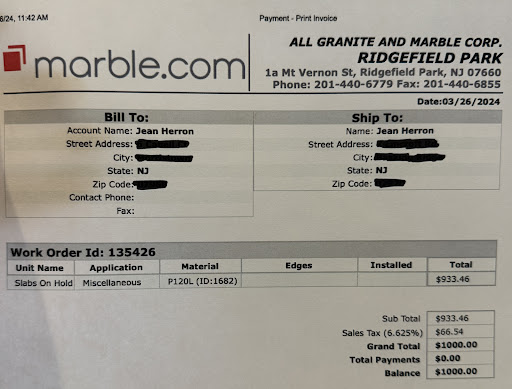 Additionally I checked other marble company has return and exchange policy but I surprised this company doesn’t have return or exchange policy. I strongly recommend to go NJ to see the original stone and check details for avoiding any trouble like me. I have to report “better business bureau” for improving their business.