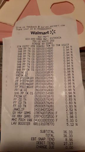 Read moreIt felt like my 1st time at this Walmart as it has been about a decade. Unfortunately I was in a time crunch so I wasn't able to spend hrs searching out deals. I will say where cat food is still hard to get, the prices here are among the lowest for wet food. FF petite are $1.09 everywhere, here they are $0.98! Sheba trout in gravy is about impossible to find! It's here & plenty of it also under a buck!!Dry food was very limited. I needed instant cappuccino & at that hr I had no where else to go. I was forced to make a purchase that otherwise never would have. I paid $5.00 for the sm maxwell house cappuccino. On the other hand honey Graham crackers are a great deal at $1.98. Hannaford in Keene Graham crackers were $1.67/box then shot up to almost $3/box. For all cat parents, I try diff litter box scent boosters regularly & review them for other apps. I found a brand of crystals, lavender booster $5.12. Lavender is the only scent my owners allow!! It is great. Label states 1/2 cap full on top of litter. I found its so strong that I use maybe 1/8 carefully. This also allows me to add more for a burst of freshness in...