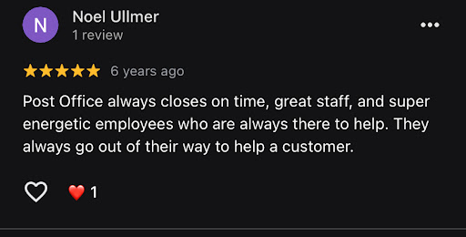 Read moreThis post office has the nicest staff I have ever encountered. I have been in the area for several years and have met each person due to a transaction of some kind. They are ALWAYS PLEASANT & INFORMATIVE. I have never seen them in a bad mood or unpleasant so I can’t comment there. They helped me mail a birthday gift at the last minute of the day to my granddaughter which was a wonderful gesture since they were closing very soon after. Hopefully the staff will be at this location for a very long time. Remember, as bank locations are closing in local supermarkets and other conveniences are going away; we need to support our local Postal Services & the Staff…. Be Grateful &...