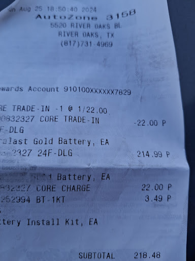 Read moreJust wanted to let someone know what an awesome experience I had at my local store this afternoon. I went to the River Oaks store to have my son's 6 month old battery checked. I was greeted by Nora who eagerly grabbed her testing equipment to accompany me to my son's 2005 Yukon. Immediately upon raising the hood she noticed that he had been sold the wrong battery for his truck. She guided me through a full credit return to exchange it for the correct one. She even asked me if I had served in the military so I could get the veteran's discount on the upgrade. It is so seldom these days that you find people who aren't stuck looking at their phones when a customer comes in. Nora almost met me at the door and enthusiastically helped me navigate the process with the best attitude I've experienced in a very long time. Customer service at it's finest. Don't let Nora get away. I'll be looking for her next time I come...