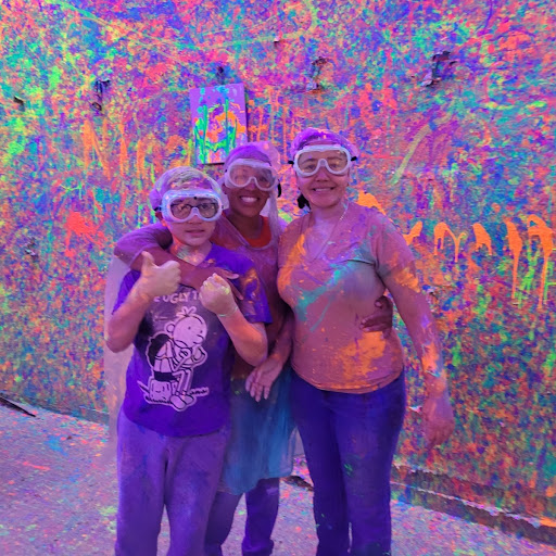 Our kid did the splatter room alone and that was her favorite part. We paid for an extra canvas so she was able to do two different paintings and make a glorious mess. They offered confetti cannons for purchase at the shop and helped guide us in making the decision on which ones to get.