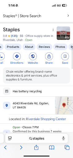 Read moreI have never ever ever had such an awful experience. I was supposed to have a package delivered to me on Friday. It ended up showing up early but I was at work at the hospital so I missed it. UPS then took it here to be picked up. I went to pick it up but they would not give me my $2000 package because the address did not match my address on my ID. I explained to them that I moved literally 3 days ago and that I could show them the order and receipt. They still refused and told me to contact UPS or the seller. I called UPS and they said that my lease or letter from my landlord would work. Staples would still not give me my package with that. I called the seller and the seller called staples and verified that it was mine and asked them to give it to me and they would still not. I called their corporate and Tony my only shining light in this absolute madness was baffled why they were acting this way and being so rude and difficult. She is currently trying to help me. Moral of the story do not expect any actual help or compassion from these people. I will never ever go here again and I hope all delivery companies stop using this place. They do not deserve there license for it. Will be sending emails to UPS, Amazon, and their corporate. Awful awful place wish I could give...