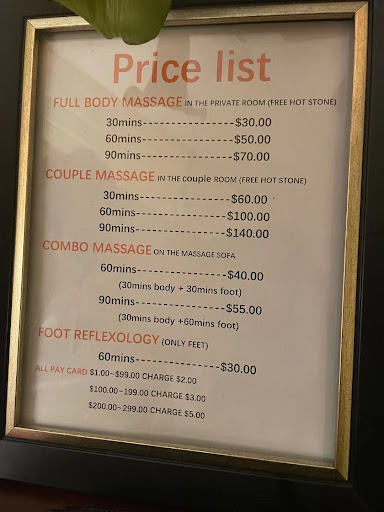 Read moreThis is one of the worst experiences I’ve ever had. When I walked in, no one speaks English so it is very hard to communicate what it is that you want. After pointing to what I wanted on the wall, I was charged full price (I came in because of their deal) They rushed me over to a table in the front, fully clothed, placed a towel over my eyes and lightly rubbed my arm for 20 minutes. I started getting uncomfortable with how awkward it was so I took the towel off my eyes and found my “certified massage therapist” as they advertise when you walk in, watching her phone as she was rubbing my arm with one hand. I quickly asked for a refund and they then said they would get someone else in a private room with a real massage and I very kindly said I would like a refund.