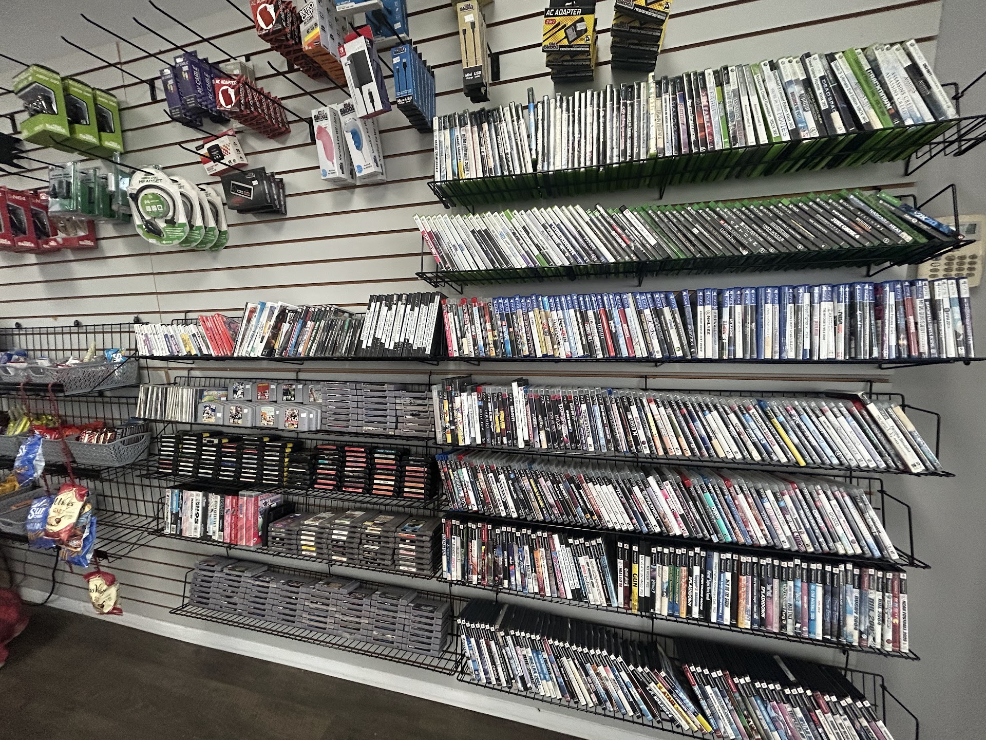 But the store itself was about a mid-tier stock with quite a bit of video game stuff right as you walk in. I could reasonably find anything that I could want for cards or DnD. They had a fair few popular nerdy board games along the walls and all the way back. They sell 40k stuff but I didnât see any ongoing games or people playing.