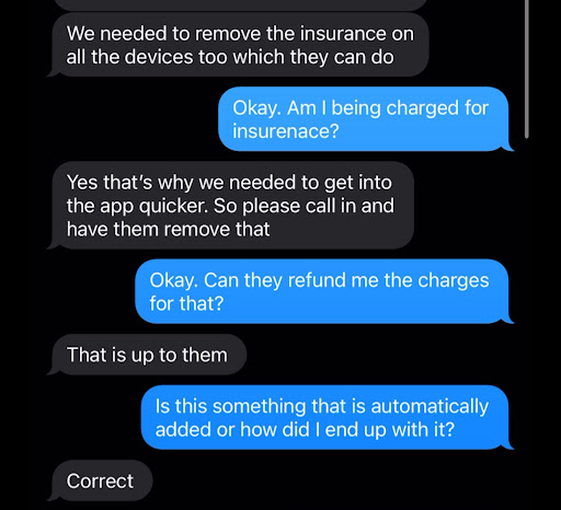 Whatâs even more concerning is that Matthew stands to make commission from adding this insurance, raising the question of whether heâs defrauding customers for personal gain. Iâve included our text messages where he contradicts himself, first saying it was automatic and later admitting it was done manually by him. AT&T needs to address these unethical practices...
