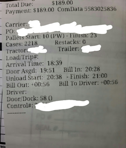 Ā Ā Ā Read moreDrivers avoid this place. Showed up at 17:55 12/13/2020 for an appointment at 19:00. Checked-in at 18:03. I was told to wait for a phone call with a dock number. Waited until 20:28 and received my dock. Got backed into the dock and went and spoke with a gentleman to check-in by door 87. Drivers aren't allowed inside for any reason. The gentleman gave me a lumper slip to fill out because this DC doesn't take paper checks. I started to get unloaded at 20:40 and was done by 21:00. I finally got my BOL at 00:58 12/14/2020. I only had 10 pallets, so it took them almost 4 hours alone to count the product. On your lumper receipt it gives all times for check-in, unloading, etc. Double check the times because my check-in time was wrong due to the guard waiting to actually check me into their system. I checked in at 18:03 but their time stamp states 18:39. I'm an O/O and keep close track of everything. The guards were polite, but the employees are slow. This was a Sunday night for anyone wondering day...