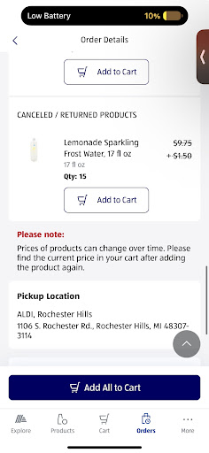 Read moreIf your going to shop at Aldi go in the store donât use the pick up service. I really like Aldi overall, but their pickup service is consistently disappointing. On my last order, I included 15 sparkling waters and even selected substitutions in case my chosen flavors werenât available. Instead of fulfilling it, the employee marked them all ânot availableâ and refunded meâyet when I went inside, the sparkling waters were sitting right there on the shelf.