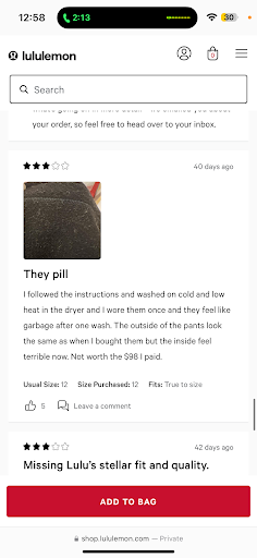 Lululemon always has the best customer service at every location I have been to. Don’t waste your time going to one the in Rochester Hills, MI. The manager is absolutely nasty. Not at all what you would expect from a manager. I bought a jumpsuit less than a week ago that is clearly defective and said she can’t return it to get a gift card. After going back and forth wasted time in there, also called customer service and had them on speaker and they said it should be no problem. She refused and send go ship it lol. Walked out went to Troy, MI Lulu all I have to say what a world of a difference. I am aware item is defective it’s not my fault. The associate at Troy, MI didn’t even need a manager. He didn’t give me store credit either which I would have been fine with, he gave me credit back to my credit card. This jumpsuit is $260 which is what paid 6 days ago when I purchased it. All the reviews on this item are online so many others are experiencing the same exact issue. Some of comments online said the store will take it back no problem. Yet I had to go to different store in order to get the correct service. Lulu made a big mistake by promoting or by hiring this manager at the Rochester Hills, MI. I will be contacting corporate to make sure they know she doesn’t meet the standards of Lululemon. The employee wasn’t any better either. Didn’t have high expectations with her manager training her to be rude just like her. Extremely disappointed for Lululemon with employees like this destroying their image. People should get a job they actually enjoy. Clearly this is not a good match. Pray for her and hopefully she will land a job where she can respect herself and others around her. I have included pics of comments from website and someone posted a pic of the item and what happens to it, which is exactly what happen to my item. The fabric is softstream. I am still in shock I had to experience that and I hope no one will ever encounter that. Have a...