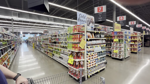 The store itself boasts a modern design, which pleasantly surprised me. While the aisle layout may feel a bit like a maze, it's understandable given the nature of grocery stores these days. The entire building exudes a modern vibe, and the pricing is in line with my expectations. I appreciated how the produce, deli, and bakery sections are all conveniently located on the right, while the refrigerated and frozen sections are on the left. The aisles are clearly marked in a Midwestern style, making navigation a breeze for us use to it.