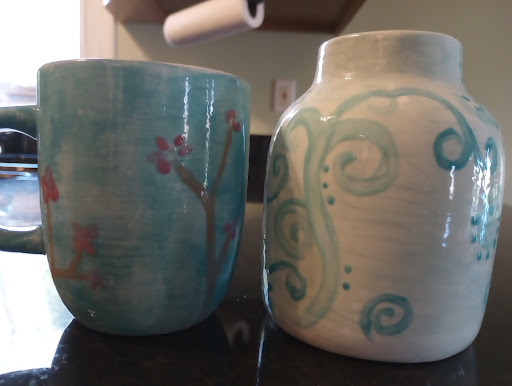 Overall, this is a fun activity and I would come again. My criticism is that they need to invest in nicer brushes. The brushes shed and get hair on your projects and streak terribly. I know it's not me doing something wrong because I do pottery at Paint Creek Center of The Arts and never have streaking. I've painted 2 pieces here and was very disappointed with how my pieces turned out for this reason. In the future I'll be bringing my own brushes but if they invest in higher quality brushes, I'll update this review to be 5 stars. Paying for the piece and the experience isn't exactly cheap so I think they should respect their customers more by providing good quality equipment. I am not the only PCCA student that's come between semesters and felt disappointed by the brushes. I also should mention that the inside of my mug I used a sponge instead and it looks a lot better than the outside...