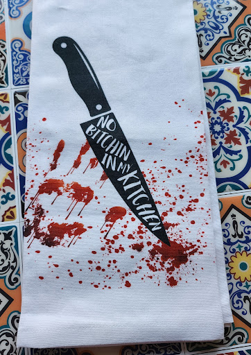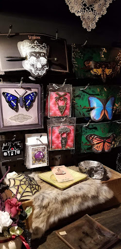 Read moreWhat an extraordinary shop! While out with my niece, we saw the signage and decided to check it out. It's dark, mysterious, Gothic, and even spooky unique. Caution: it's not for everybody, but it is a niche for many. I personally got a kick out of it, as did my niece! There are lots of interesting gifts. Some are even a bit eerily twisted! The persons working the shop (I'm thinking they are likely the owners??) Were dressed and made up perfectly. Check it out! The posted picture is a kitchen towel I purchased that is perfect for this True Crime lovin', 67 year ear old, and grey haired lady in my "Bitchin' In The Kitchen Cookin' With Crabby"...