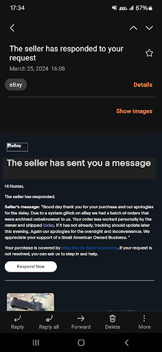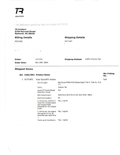 Last edit (3/25) - After treating me like a scammer and going radio silent, I get the email attached below. They finally admitted that they were at fault caused by some system glitch. Hopefully my holster is...