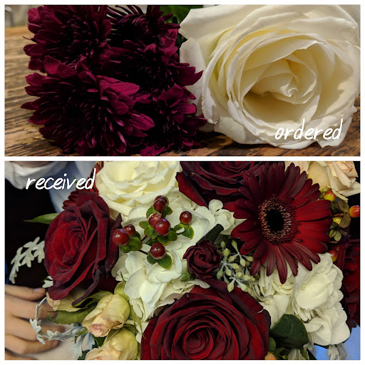Fast forward to the wedding.. We had sent someone to pick up the flowers that was not part of the original consultation and that is where we went wrong. The mum color for the individual stems and the bouquet was wrong. They had created a bouquet that some might find pretty, but it was not my bouquet. It had red roses (which I hate), red daisies, light pink roses, berries, and white roses. We sent someone back to Bussey's to tell them the bouquet was wrong and request they fix it. The lady up at the front argued with my friend saying this is what I ordered. It got to the point my friend called me and I had to speak with the woman who told me there was a miscommunication and that this is what was written down as my order. I explained again that this was not in fact not what I ordered and that they needed to change the bouquet. They were able to put together a bouquet that was similar to what I had requested but still with the wrong color mums.