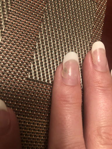 I got French SNS. It wasnât the best set Iâve ever had, but it served its purpose. HOWEVER, just a few days after getting my nails done, a little green dot started to develop on the nail on my ring finger. When it was time to get a new set, I went to my normal nail place. Imagine my disgust when she took off the nail and told me a bacterial infection had developed!!! ((Keep in mind this started only a few days after receiving the âservice,â so it wasnât like I had worn them too long or anything similar to that.))