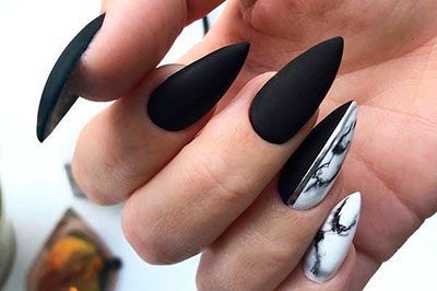 I never pay someone to do my nails because I usually do them myself. My nail tech was super friendly. She asked what I wanted to do so I showed her the first picture (black with white and marble nail art) she said she could do. She added tips and one tip was obviously super crooked, she thought cutting it would fix it; we had to soak it off and put another one on. She proceeds with the acrylic service and the shaping wasnât terrible but wasnât the best. My index finger looked more stiletto than sharp almond while the rest were almond. Then after sheâs done with the acrylic she tells me she canât do the marble design I want with matte top coat and I was just like âumm what?â So I picked a different (second picture) with a few changes. I didnât want the silver glitter thumb, I wanted it black and change the pinky to silver glitter. Then add the nail art to the other two nails. Well if you look at the third photo, that is what I left with. I was beyond frustrated and just wanted to pay and leave. I soaked them off myself when I got home and redid them myself (last photo) and obviously you can use a matte top coat over marble nail art.