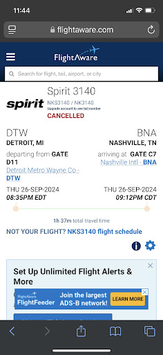 Read moreIf I could give them 0 stars, I would! Spirit claims they prioritize customer satisfaction but use their “policies” to justify stealing money from people. Last September had a flight to Nashville, which was CANCELLED by Spirit the day of the flight (only the flight there was cancelled). I had accommodations booked and tried to rebook with Spirit to make the trip still work, however that weekend also saw Tropical Storm Helene hit Tennessee HARD. Even more outrageously, the options to rebook the flight only offered flights with a layover at MCO (Orlando), which was also being DIRECTLY HIT BY THAT HURRICANE.