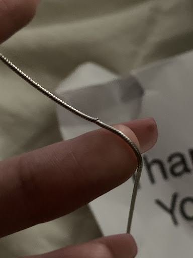 Read moreI HAD a beautiful Italian silver snake-chain that needed repair. I brought in my necklace, left it with the lady, and expected the best (considering the $) - Three weeks later my necklace is ready. I thought my favorite necklace that I have ever owned had been repaired, you’d have to care a lot to get it repaired anyways, right? Well, this is what I got back. A chain that once never caught baby hairs left a gnarly scratch on the back of my neck, and the EXACT MIDDLE of the chain is wielded solid. Almost looks like it has a built in bar now, and it’s horrible. Haha, thanks for destroying this necklace to the point now where I cant even get it fixed by a person that could’ve actually fixed it. Look at that chain and - Seriously?? Why would you even send this back to me? Made me cry and I freaking...