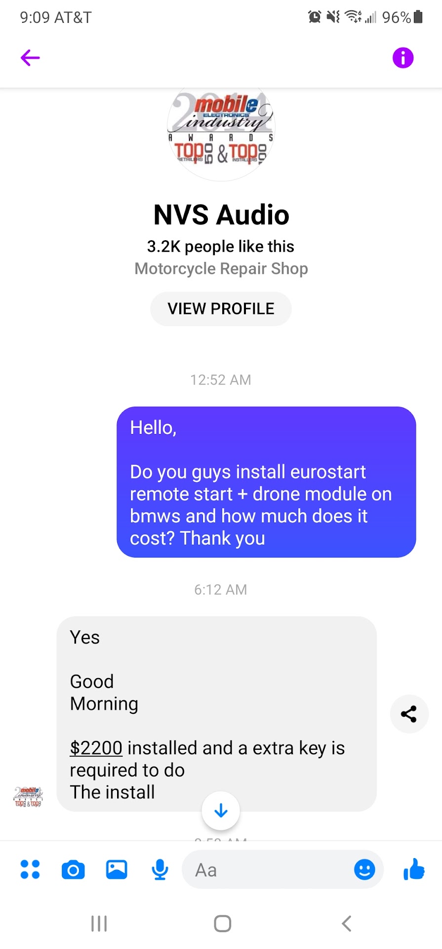 I am a repeat customer of Carlos at NVS AUDIO and would like to share my 2 cents worth of commentary as to my 2 experiences. In 2022 I took a 22 roadglide to NVS , New Jersey location and hesitantly dropped off my bike, (hesitant because there were damn near 75, maybe 100 bikes all jammed in the shop, also bikes being dropped off 1 after another in the hour or so I was there ) bike was brand new, 10 miles, 26000 dollars worth of upgrades that I already did and was nervous. After driving 600 miles each way and personally meeting Carlos I decided to leave it in his hands (numerous nervous thoughts of what if's going through my head because of how busy they were and how many bikes were being UPGRADED). Drove home and picked up bike 6 days later and I can personally tell you that it was a absolute 1st class job from a First Class guy (arrogant, but first class, and when I say arrogant I mean in a good way because you'd be hard pressed to find anyone who knows motorcycle audio better than him and he knows it!!šš. )100% all good! A year later I had a blown 8" mid bass (my fault) , called him on a Thursday evening, got home from work Friday and 2 new speakers at door! BTW, IT WAS An NVS STAGE 3 SETUP. WAS INCREDIBLE!! I recently bought a 25 roadglide and decided 1st thing I do is upgrade audio but I couldn't take the trip to Jersey this time around so I called Carlos before purchasing bike, told him that, asked if we could figure out a system that I can install myself. He said absolutely. I pulled trigger on bike, and audio!! He sent me euphoria fairing speakers, cicada amp, hertz saddlebag speakers, lid cut in kit and all the trimmings, With a few hiccups all on my end, he pretty much immediately walked me through via phone/FaceTime my Install went extremely well! (Actually impressed myself but im no strangerto wrenching on bikes) Coming from an 8 speaker stage 3 and going to a 4 speaker in new bike, (to be expanded in the fall) I wasn't expecting the results I got! For 4 speakers it is OUTSTANDING, and that's coming from an extremely picky, detail oriented person. There are 1 or 2 other MC audio outfits out there that are very good, but I will tell you from my repeat experiences that I will never know how good they are as long as Carlos at NVS is in the game as like I said before, YOU WOULD BE HARD PRESSED TO GET OR EVEN FIND BETTER RESULTS . Took the time to write this lengthy review (and I don't do reviews) because the man earned it!! If I'm fortunate enough to get another bike in the future, my first call will be to Carlos at NVS AUDIO!! I suggest anyone who took the time to read this do...