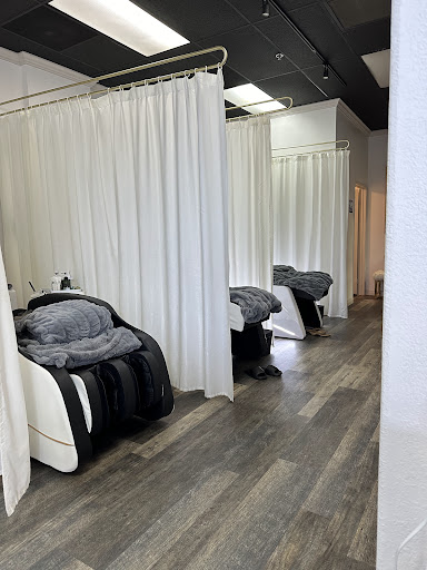 Eventually, when we arrived they rushed us to the back to change. The robes provided were not inclusive for larger individuals, making it a struggle for comfort (the belcroe barley sticked & I weigh 200lbs.). We were then placed in a private room with massage chairs, but they only had it on for one-minute and they chose to turn it off. We couldn't convey what was going on because unfortunately there was a language barrier that hindered the communication as they did not speak English. They sat us there for a 30-minute treatment, where products were applied to our hair without any explanation. My husband was left unattended for 5 minutes, highlighting a lack of attention to customers.