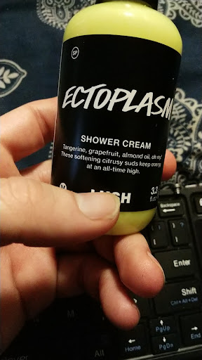 Priced at around eleven dollars with the BOGO Sale, I am putting the ''Cinder" (spicier) by the kitchen sink and the Ectoplasm by the bathroom sink because the shower gek has same general consistency as Ambrosia, the Lush shaving cream that I use regularly, which I am low on and a tub of which can run between forty and a hundred dollars depending on the amount that you are buying. I am hping that the Ectoplasm provides a similar shaving experience; I normally only us a nickel sized amount of the cream to finish with the final smoothing process after having taken most of it off with just hot water or maybe a little drop of soap if i hit a particul arly rough patch. /men tend to flinch when Itell them that that but if you use a sharp enough razor then there's hardly need any of the obscene amount of facial lubricant oroduct most men use; all of those gels, creams, foams, and oils just compensate for the fact that those expensive, impossible to clean, five-to-twelve bladed disposable monster razor heads that they have to sell under the false premise that more blades = a better shave, which just is not true; a single, sharp blade and a product like Lush's Ambrosia gives the closest shave (at least, the times I shaved myself; twice I was in a hurry for a job interview that I stopped at one of those chain men's full service barbershop I was supremely disappointed in the service, the quality and closeness of the shave, and the price; if I am paying 120 for a shave and haircut I expect a good conversation, prompt service and to be baby smooth.