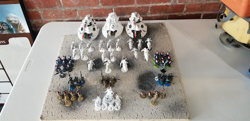 Read moreI have been playing D&D there for nearly a year now and a customer for longer and it has always been a pleasant experience. The store is downstairs and is wheelchair-accessible. In the back is ample space for tabletop gaming - there must be a dozen battlefield tables just in the main store section, not to mention all the tables in the back. While I admit there are probably better prices online for a lot of the things they sell, one of the players in our campaign got his three core rulebooks there for about $75 total - not bad at all. The staff have always been courteous, personable, helpful, and knowledgeable about their products. They sell bottled drinks and are very lenient about bringing in food if you're there to game. I wish they had more D&D stuff but their Warhammer inventory is very impressive, and they also carry Pathfinder, LotR, and historical war minis, landscape pieces, and a bigger selection of model paint than I've seen anywhere else in the area. And from my experience, the bathrooms are just fine - nothing special but regularly cleaned, faint scent of...