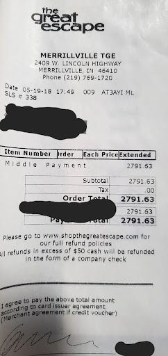 Every year at the start of Spring I am reminded of how The Great Escape Merrillville ripped me off on 5/19/18. My husband and I bought an outdoor table set of six chairs and one table for $2,791.63. The sales rep pushed the table and chairs because he insisted the warranty was great. We felt like the price was too high, but the sales rep assured us, they have an impeccable warranty in case anything goes wrong. We used the table set for part of the summer in 2018 and then it went into our 400 sq ft storage room in our basement for the winter. When we pulled the table out of storage from our basement in May of 2019, the table had turned from GRAY to PURPLE!!!!! It no longer matched the chairs to the set. I immediately called the store and they forwarded me to the Great Escape in South Holland. The South Holland location got back with me quickly and said they were going to fix the problem. (Warranty inv #AT3AXN