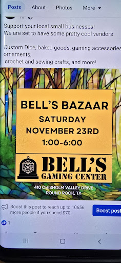 Read moreI wish I had found Bell's earlier! I had a great experience shopping there tonight, and I look forward to coming back for events. I can't wait to bring my crew for games. Michael was super informative and helpful, and I felt very welcomed, which unfortunately is an unusual experience in a lot of game and comic shops.